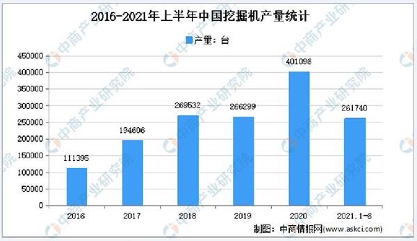 從近幾年工程機(jī)械的發(fā)展來看,挖掘機(jī)的發(fā)展相對(duì)較快,挖掘機(jī)已經(jīng)成為工程建設(shè)中最主要的工程機(jī)械之一。數(shù)據(jù)顯示,2016-2020年我國(guó)挖掘機(jī)產(chǎn)量整體增長(zhǎng)趨勢(shì),2021年1-6月我國(guó)挖掘機(jī)產(chǎn)量達(dá)261740臺(tái),同比增長(zhǎng)25.6%。