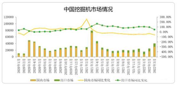 經草根調查和市場研究,CME預估2022年3月挖掘機(含出口)銷量40000臺左右,同比增速-49%左右,環比下降36%左右。
